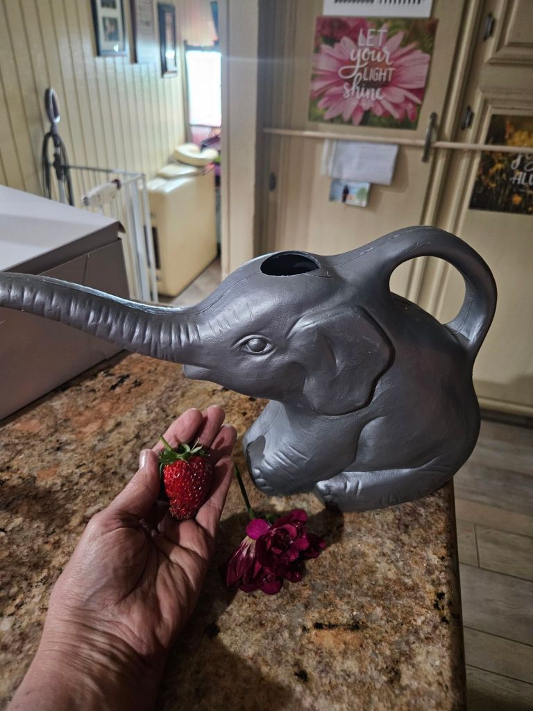 Sprinkling the seeds into the shallow trench, I smile, say a quick prayer, and cover the seeds. I call my littlest granddaughter over with her grey elephant watering can in hand. She had been the can using to water all my garden bunny rabbits and colorful ceramic mushrooms. I refill her can with the garden hose, and she carefully waters in the flower seeds. We continue on this path, for what seemed only a moment.