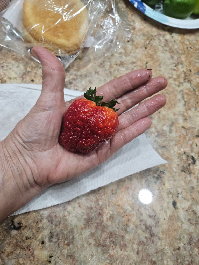 Something caught the corner of my eye on my strawberry plants. I stop and walk over to see my first strawberry of the season. Its deep rudy red color gave away its hiding place beneath its dark green leaves. Such a small sign spring is around the corner. As I go to pick it, I see it’s not of ordinary size, which was just another amazing sign to give us Hope. Reminding us of Who is in charge and that in spite of the man made chemicals being sprayed from above, Our Lord and Savior can rise above and restore His Creation with one good rain.